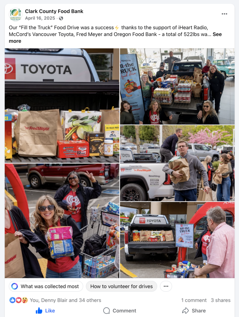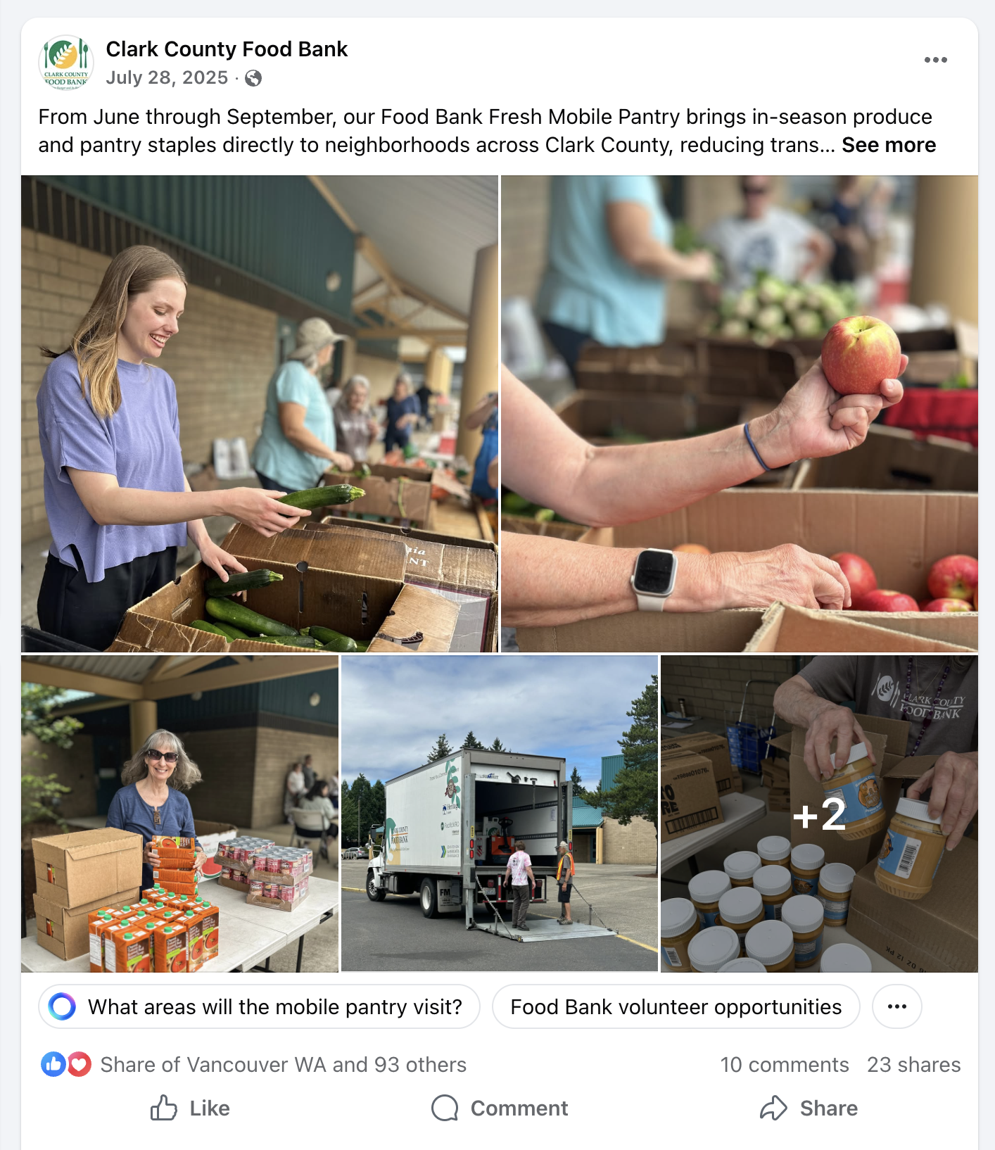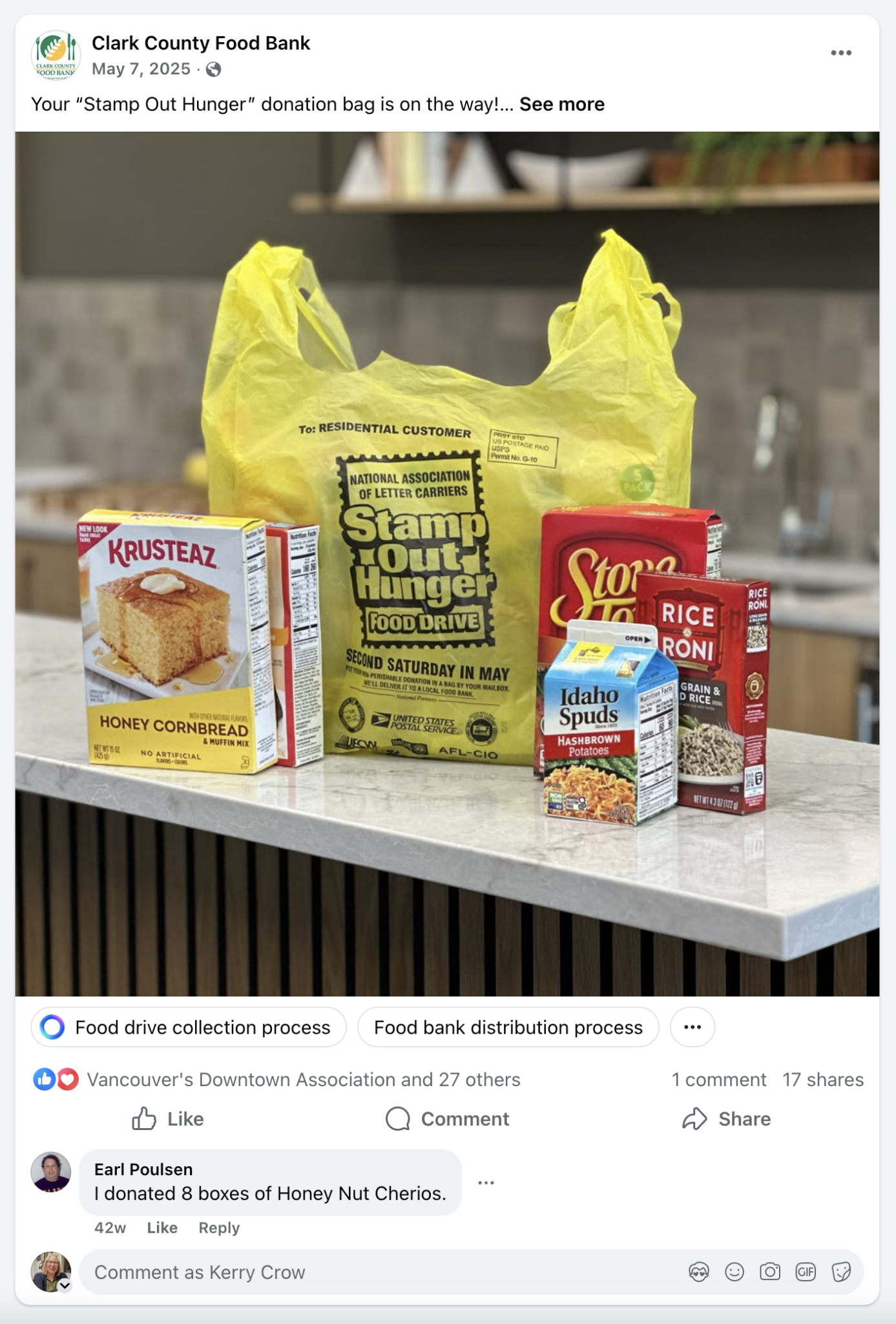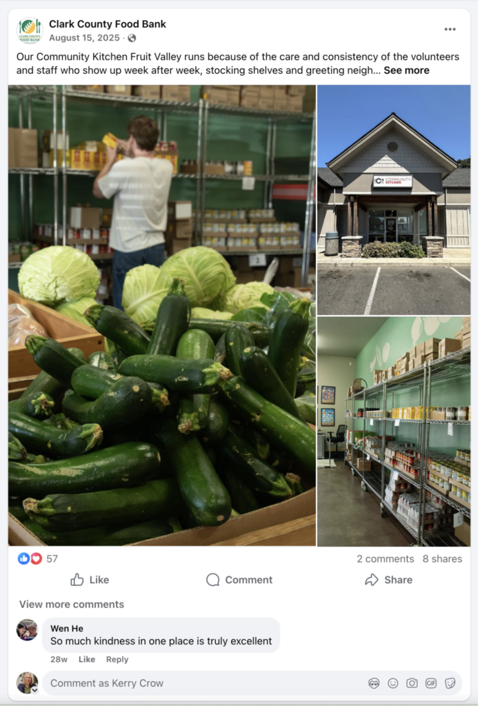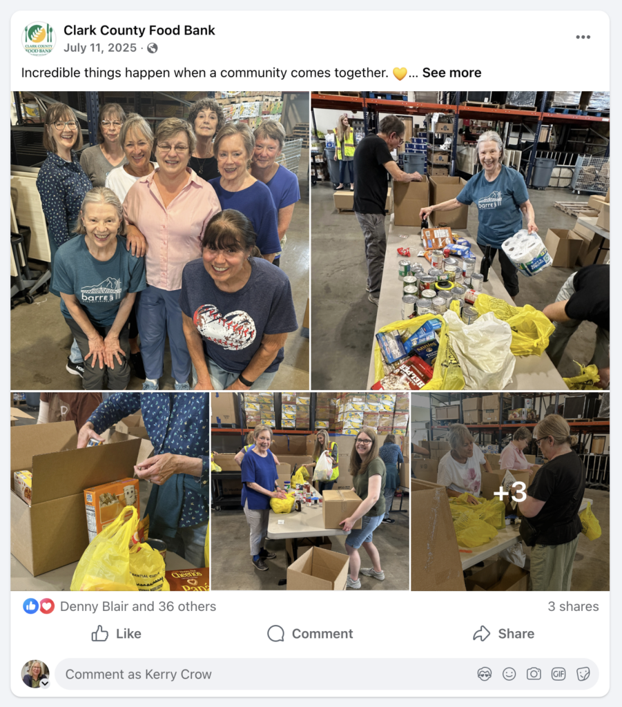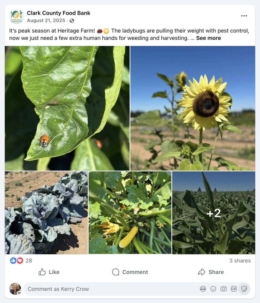 Here are a selection of Clark County Food Bank Facebook and Instagram posts I had a hand in. My roles included photography, concept development, story content, and design.
